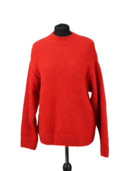 Women's THE ATTICO pink knitted sweater with logo on the sleeve. Crew neck. Fabric: 40% acrylic, 36% alpaca, 14% wool, 10% polyamide. Size on the label: 42.